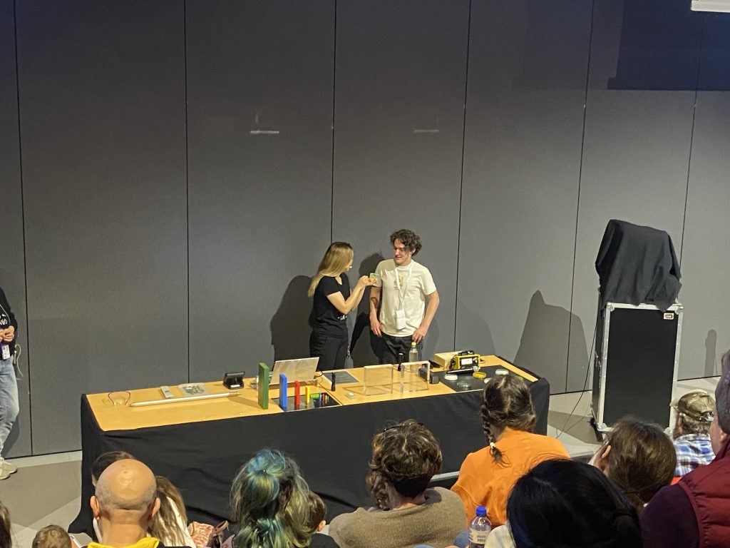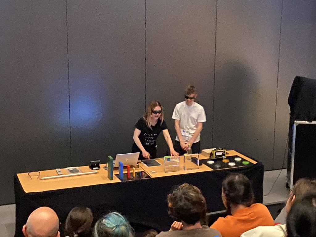 Juste après le repas, ils ont assisté et même participé pour certains à un spectacle scientifique sur les détecteurs de particules.